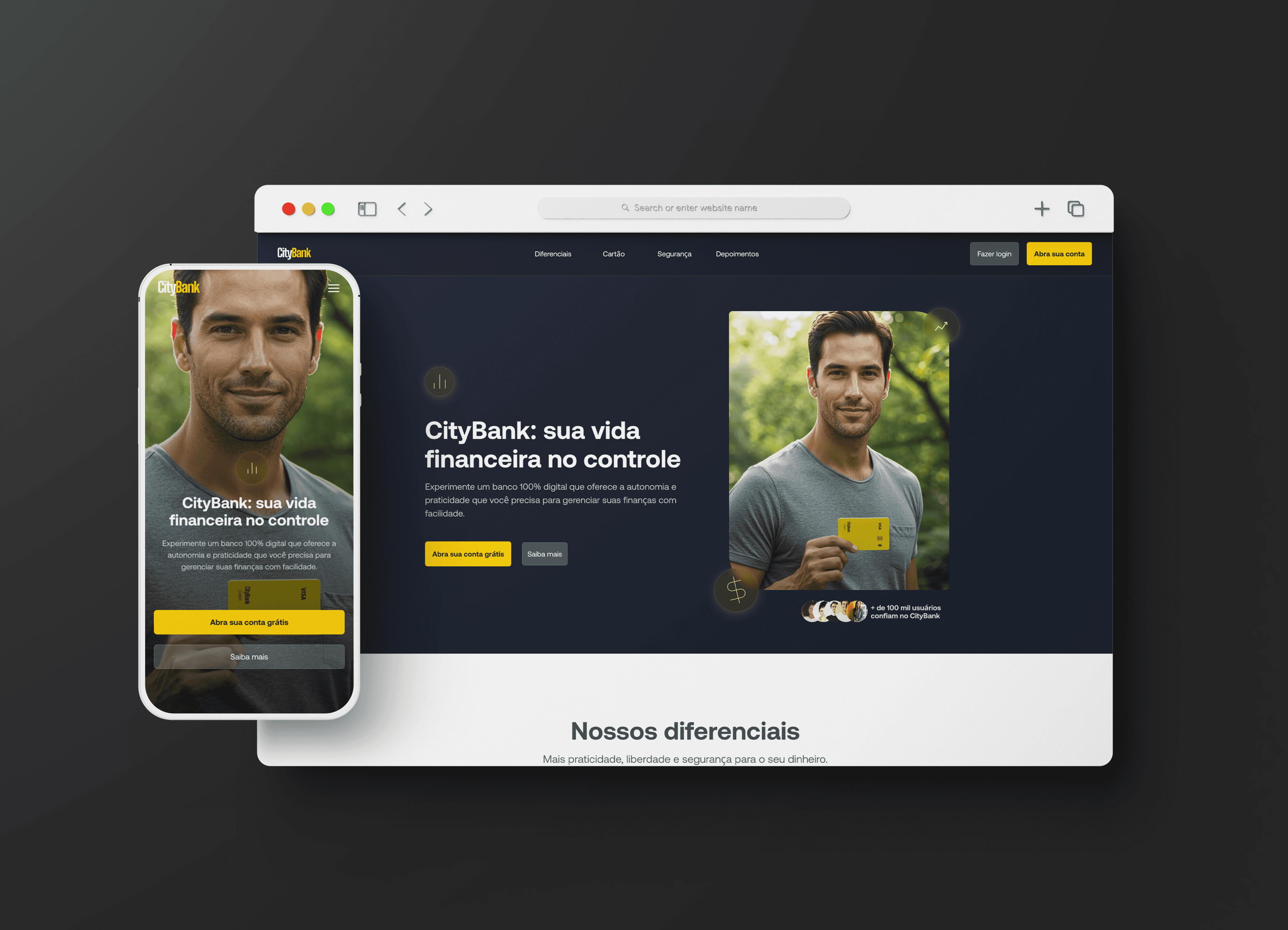 O CityBank é um projeto conceitual criado para explorar a construção de uma experiência bancária digital no formato web.