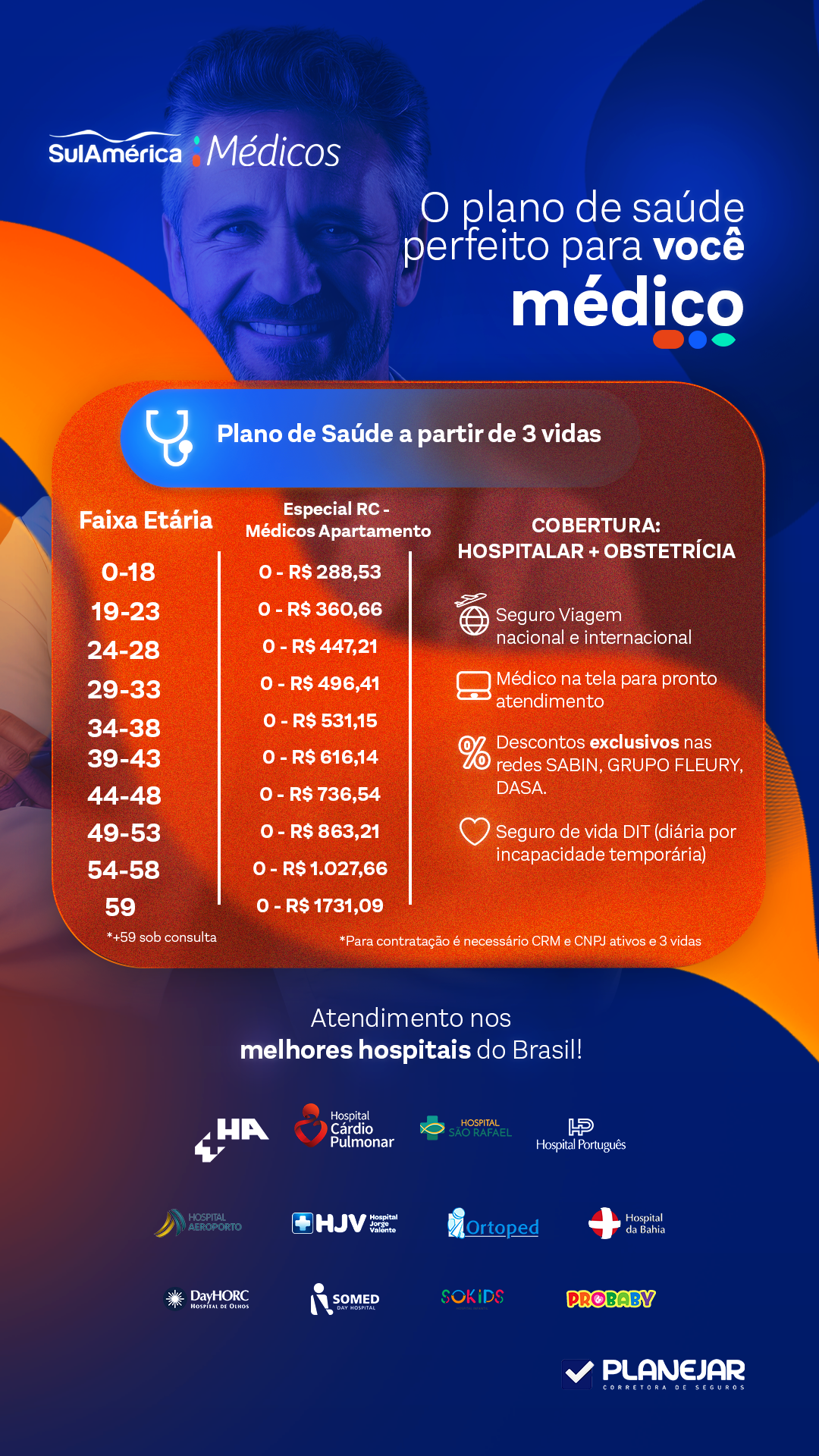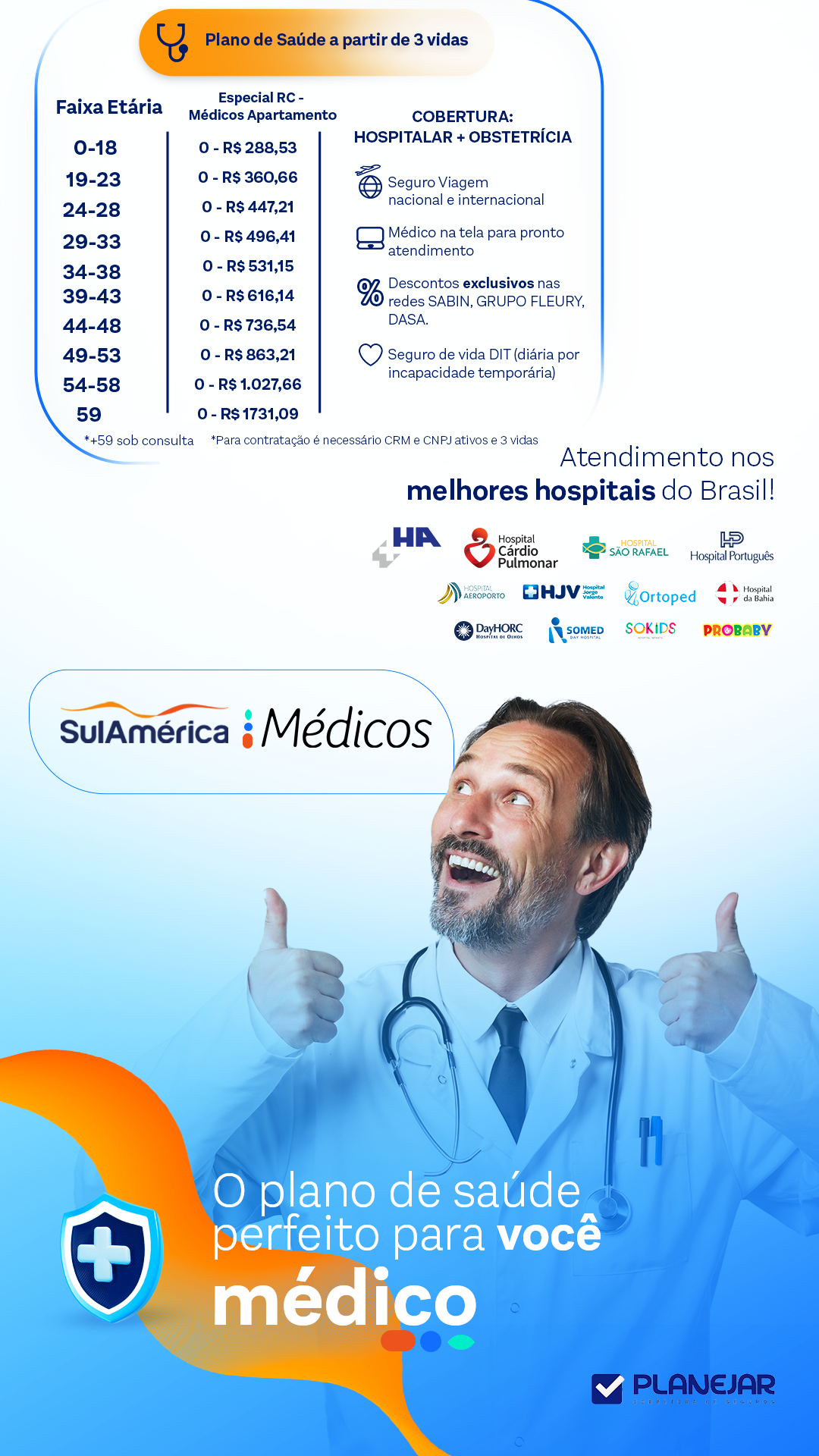 Design para redes Sociais/ tráfego pago da corretora Planejar em parceria com a sulamérica Médicos